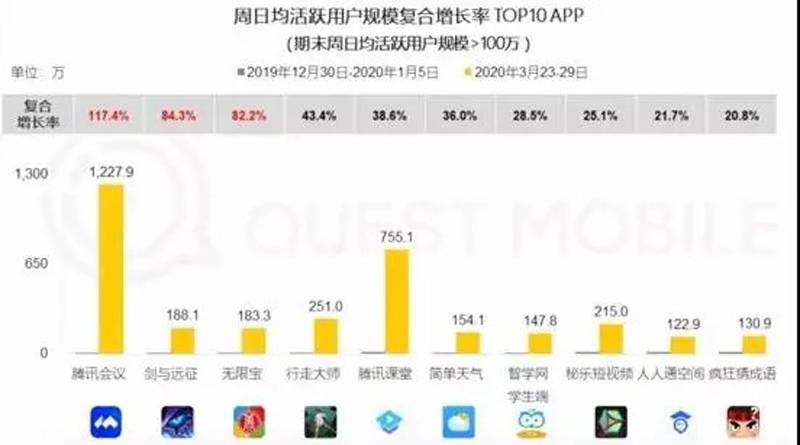 事實上,在產(chǎn)品增長方面,騰訊或許是此次疫情中最大的贏家,這背后源于它并非某款單一產(chǎn)品的崛起,而是多款產(chǎn)品齊頭并進(jìn)——小程序、企業(yè)微信、騰訊會議、騰訊課堂、和平精英……